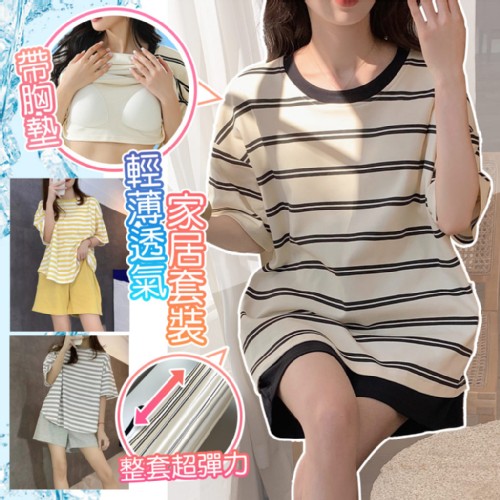 居家服 運動套裝 涼感 胸墊睡衣 冰絲睡衣 夏天睡衣 運動衣 睡衣套裝 涼感睡衣 女生睡衣 帶胸墊睡衣 夏季睡衣 睡衣女
