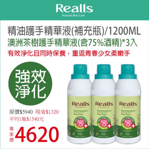 免運 【Realls 瑞兒思】澳洲茶樹護手精華液(含75%酒精)\1200ML*3入