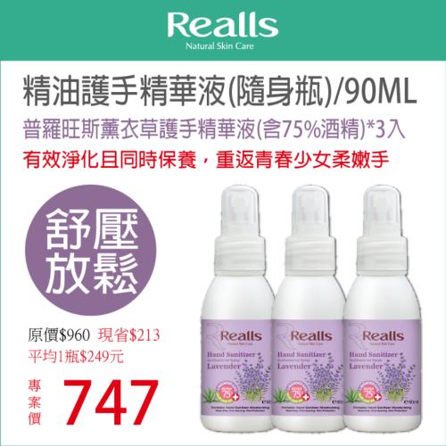 免運 【Realls 瑞兒思】普羅旺斯薰衣草護手精華液(含75%酒精)\90ML*3入