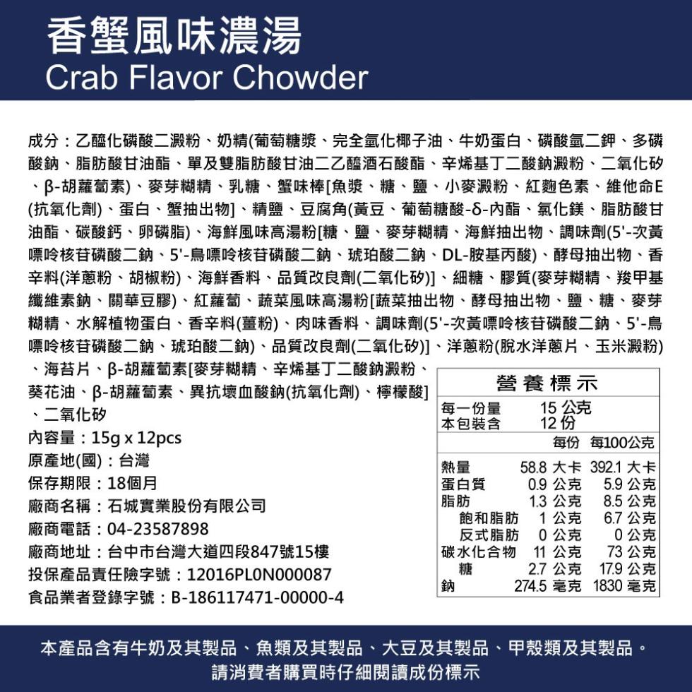 - 香蟹風味濃湯