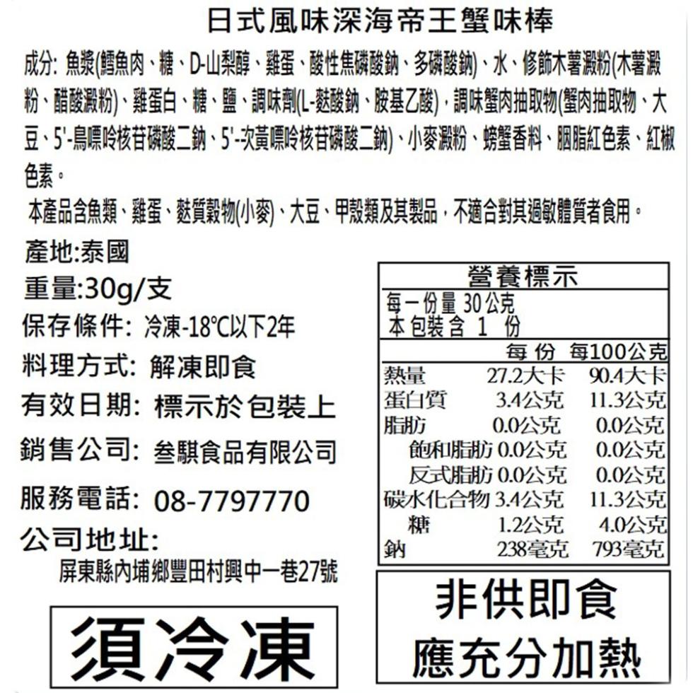 冷凍:冷凍-18℃以下2年(請依包裝上標示為主)
