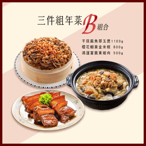 免運 【竹南懷舊】三件組(干貝扁魚翠玉煲+櫻花蝦黃金米糕+鴻運富貴東坡肉)