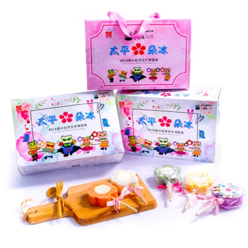 商品特色:菖樺食品有限公司成立於臺中市太平地區,此地氣候宜人盛產多樣美味水果,也是冰棒最佳天然素材。《太平花朵冰》更是以太平地區,取(太平)二字命名,並與臺中市市花(山櫻花)為外型,主要冰棒原料採用臺中市太平地區農產水果製作,期許小惡魔雪莉貝爾創作的《太平花朵冰》能像山櫻花一般耀眼綻放也為太平地區帶來新的最佳伴手禮。