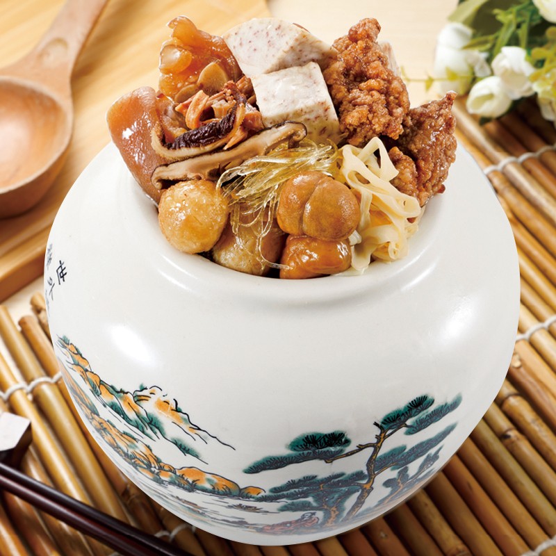 嚴選各樣在地食材,多到繁複工續層層處理,先以老母雞熬出濃郁的高湯,加入多種特選食材精心烹調,使用慢火精心烹調,湯頭濃郁,口感纖細,年節闔家團圓必備名菜!