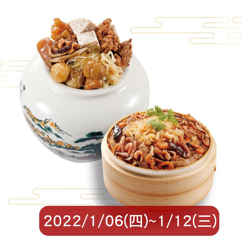 嚴選鮮甜干貝、魷魚,搭配金鉤蝦、香菇...等在地食材,採以古法蒸炊,每一口都大滿足,是年節招牌必備料理。
