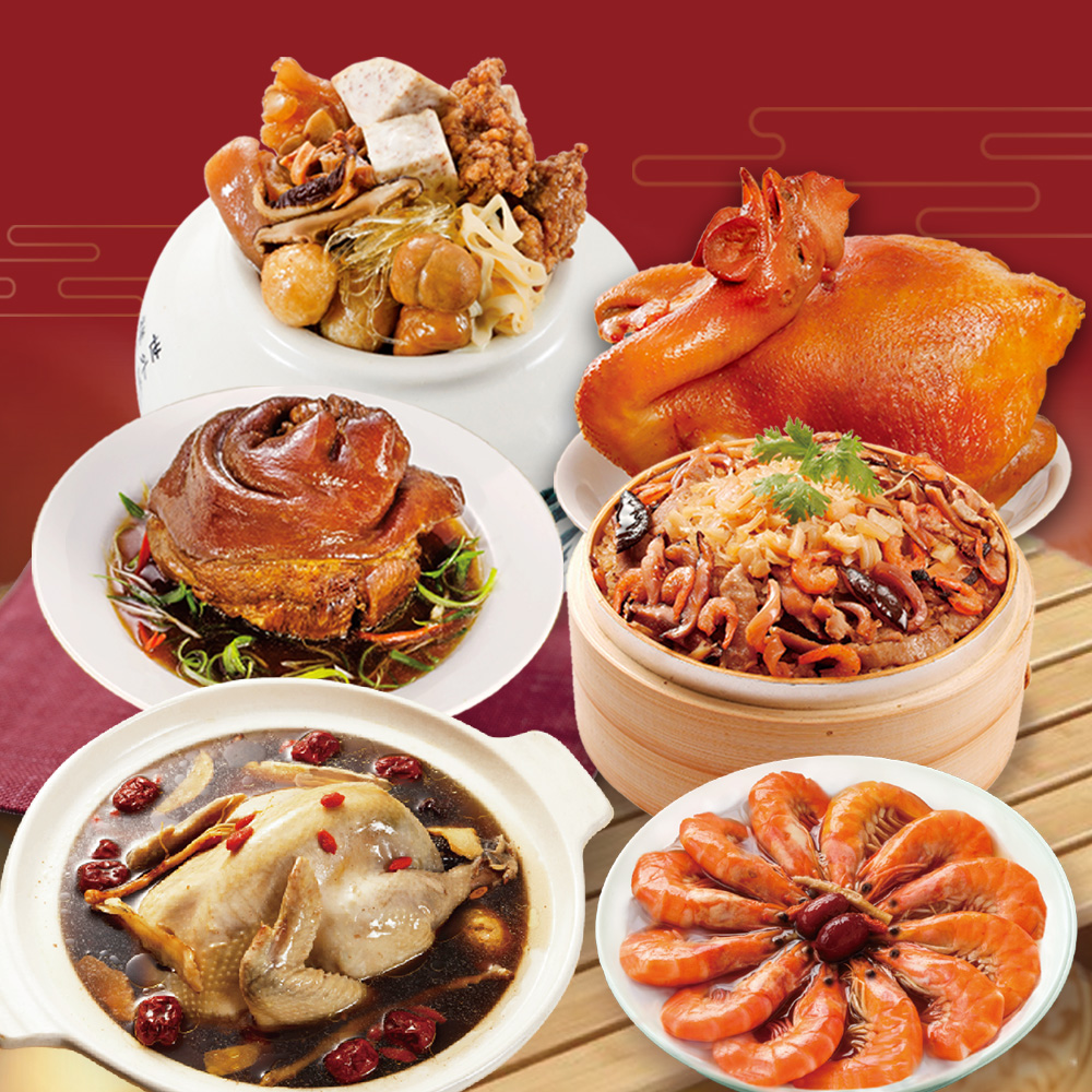 (上乘佛跳牆,干貝米糕,醉蝦,蹄膀/燻雞/雞湯任選)