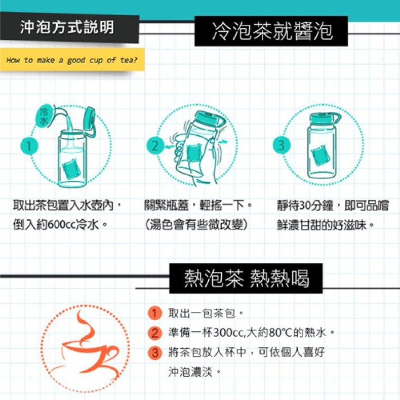 產品特色:冷水浸泡,沖泡簡單,30分鐘即可飲用,無糖不苦澀補水暢飲,順口解膩,大人小孩都適飲
