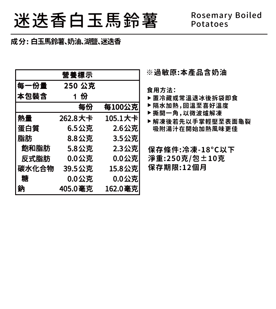- 品項: 迷迭香白玉馬鈴薯VPT