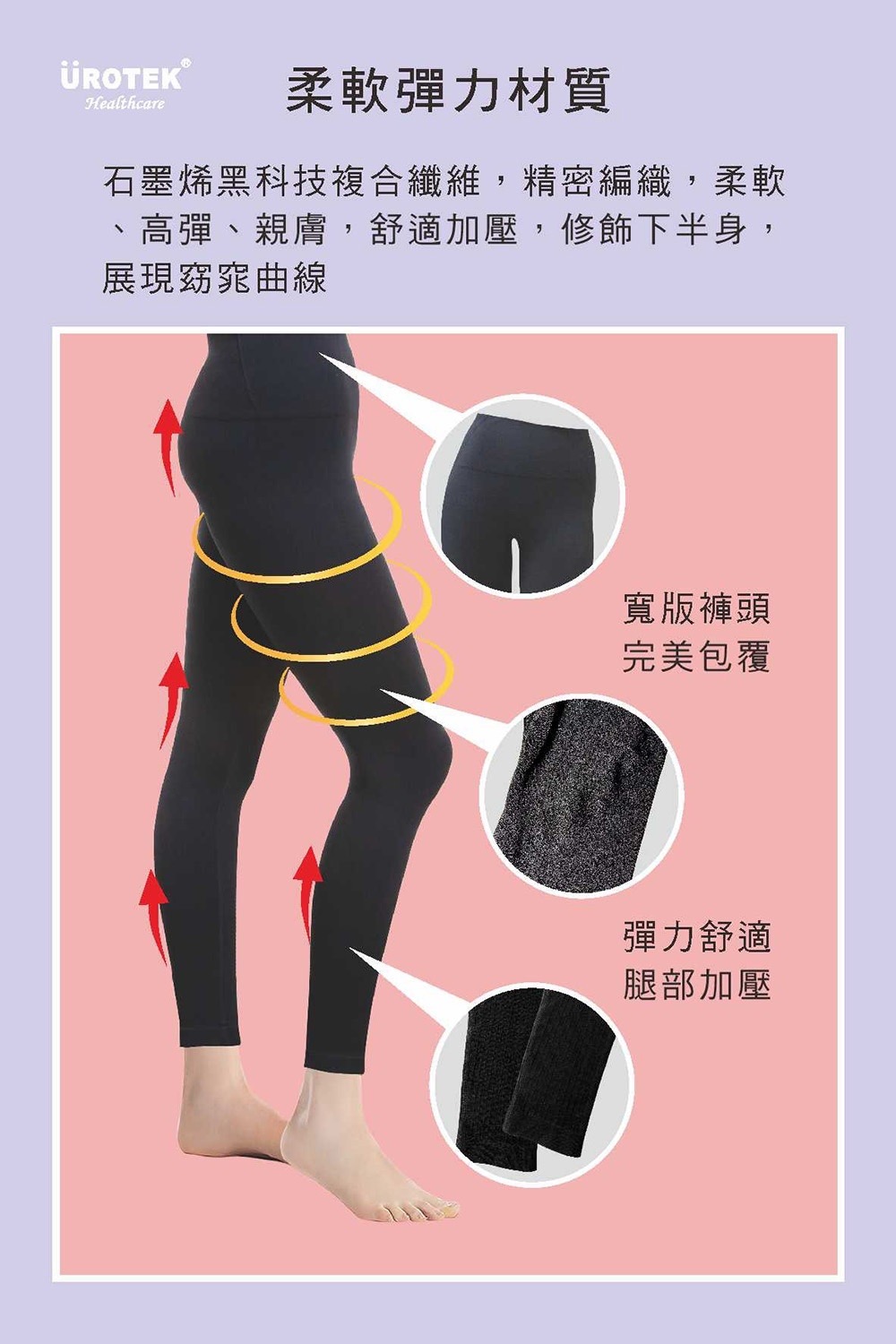 * 束褲是採用90%的石墨烯原抽色紗及10%的彈性纖維製成,原抽色紗即是在做成紗線前,還在原物料階段(母粒)將奈米石墨烯及顏色做進母粒裡了,再將母粒抽成紗線,不需在經過後加工染色,成本會高出很多. 少了一道後加工染色造成環境污染的程序,不會退色且更環保、抗靜電(避免皮膚搔癢),另外我們有做奈米鋅抗菌技術在裡面,束褲長時間穿著也不會產生異味.