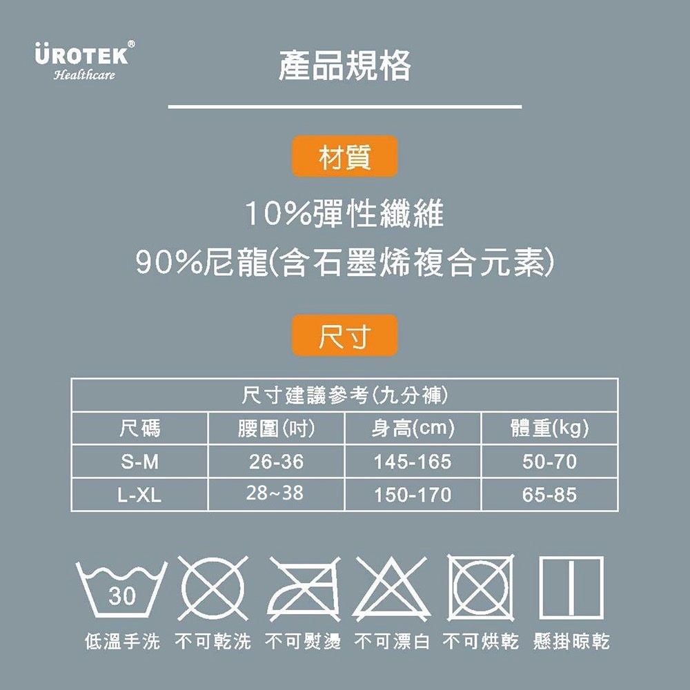 商品材質:10%彈性纖維、90%尼龍(含石墨烯複合元素)