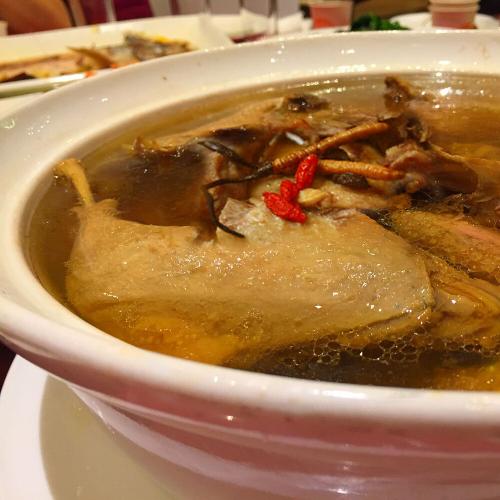 搭配頂級黃金蟲草燉煮8小時,湯頭濃郁又清爽
