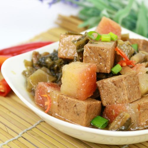 主要原料:筍干、梅干菜乾、素大方肉、素火腿漿、素羊肉、木耳絲、酸梅