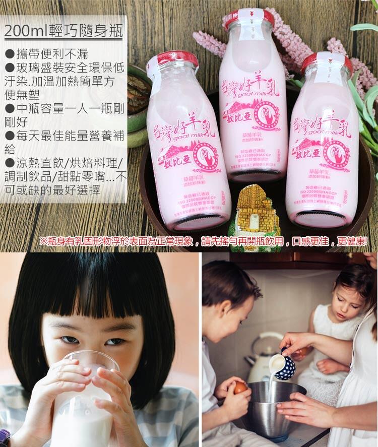 商品名稱:【高屏羊乳】台灣好羊乳系列-SGS玻瓶草莓調味羊乳200ml