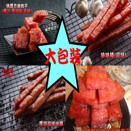 - 品項: 特厚方塊蜜汁肉乾(180g) \ 特厚黑胡椒方塊肉乾(180g) \ 特厚蒜香味方塊肉乾(180g) \ 味味棒-原味蜜汁(180g) \ 味味棒-黑胡椒(180g) \ 味味棒-蒜香味(180g) \ 味味棒-蒜味(獨立真空包裝)(160g) \ 微辣牛腱絲(200g) \ 招牌蜜汁厚切肉干200g \ 招牌黑胡椒厚切肉干200g \ 招牌蒜香味厚切肉干200g \ 泰式檸檬酸辣厚切肉干200g \ 檸檬蜜汁厚切肉干200g \ 原味豬肉絲(200g) \ 豬肉條(200g) \ 麻辣豬肉片(200g) \ 海之味235g \ 原味豬肉片(200g) \ 旗魚鬆240g \ 旗魚脯240g \ 香辣檸檬豬肉絲(160g) \ 原味肉紙(140g) \ 黑胡椒 肉紙(140g) \ 蒜味肉紙(140g) \ 飛卷片65g \ 章魚花90g \ 原味魷魚絲100g \ 碳烤魷魚絲100g \ 煙燻魷魚絲100g \ 原味魷魚片100g \ 碳烤魷魚片100g \ 招牌純肉鬆220g \ 海苔豬肉鬆220g \ 招牌細肉鬆220g \ 美味豬肉脯220g \ 五香牛肉乾(130g) \ 黑胡椒牛肉乾(130g) \ 麻辣牛肉乾(130g)