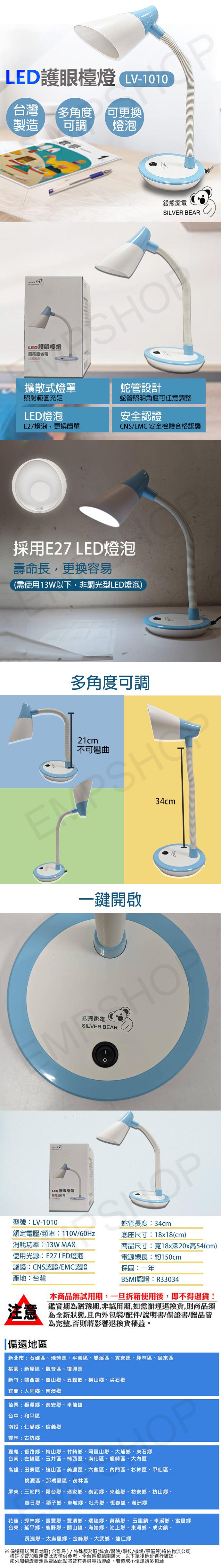 免運 【銀熊家電】LED護眼檯燈 LV-1010