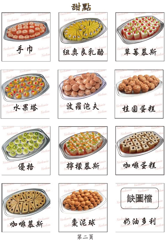 | 黑森林蛋糕 | 40 | 小泡芙 | 55 | 手巾(芋泥.水蜜桃) | 40 |