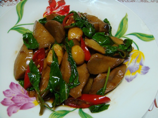主成份:杏鮑菇、蒜頭、薑、九層塔。