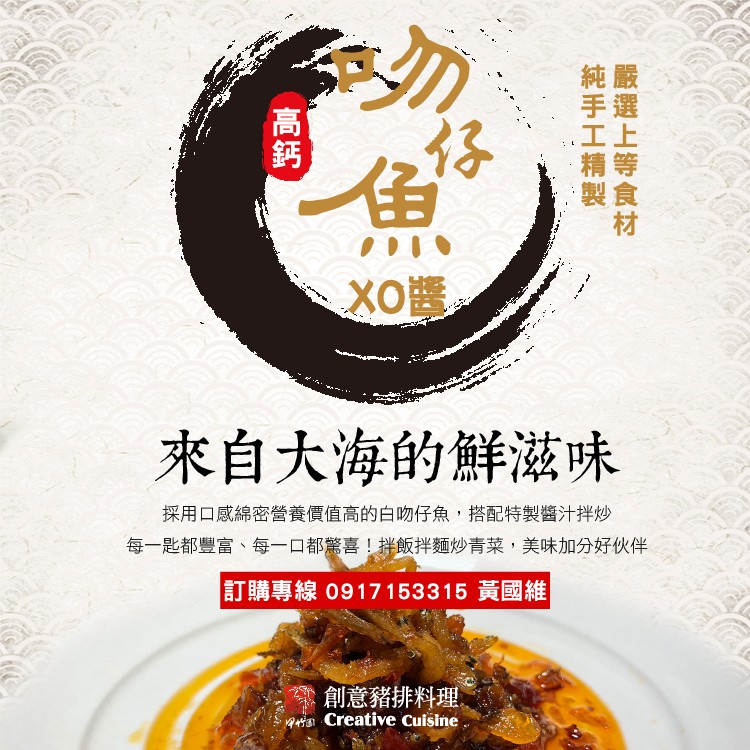 商品說明 ★廚房料理萬用的秘密武器 ,免烹煮即可食用! ★純手工慢火精製,每一瓶XO醬都是手工烹調製成 保證不含防腐劑! ★頂級美味,沾煮拌炒的最好選擇! 利用吻仔魚取代干貝絲烹調...