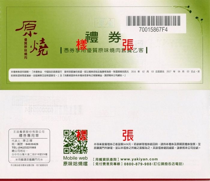 ▪ 本券已依衛福部『餐飲業等商品(服務)禮券定型化契約』規定,由銀行提供履約保證責任。