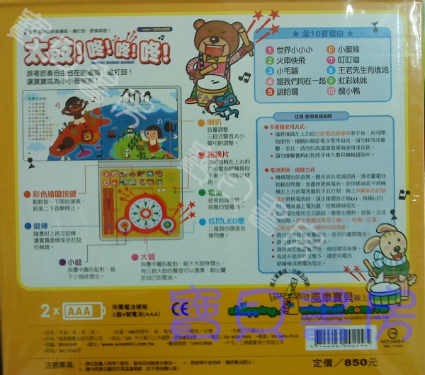 用鼓棒敲打,隨附的歌本中,有對於歌詞及打鼓秘訣的介紹,