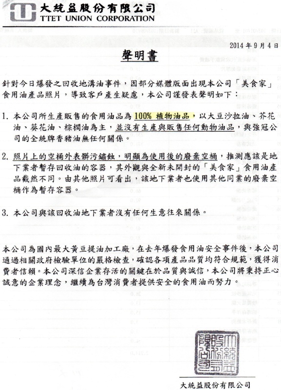 大統益「美食家」大豆沙拉油 聲明書及例行檢驗報告 優惠 $0 分享 : 紅利回饋1% 滿額免運 加入購物車 數量 優惠$0 滿170份免付運費290元 離島不限金額固定收取運費 200元 每筆訂單需要滿10份
