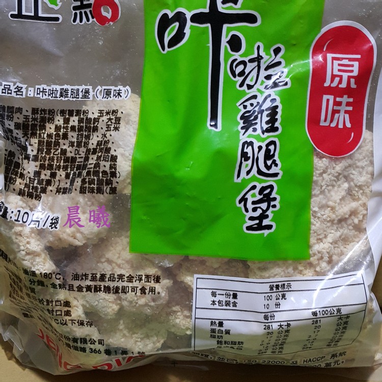 成分:雞肉﹑酥炸粉(樹薯澱粉﹑玉米粉﹑麵粉﹑食鹽﹑碳酸氫鈉﹑蛋白粉﹑大豆油﹑酸性焦磷酸鈉﹑砂糖﹑酵母﹑抗氧化劑(維生素C)﹑酵素(酵素製劑)﹑小麥澱粉﹑非基改黃豆粉﹑磷酸鈣)﹑胡椒﹑玉米糖膠﹑紅椒色素﹑水﹑調味料(L-麩酸鈉﹑洋蔥﹑麥芽糊精﹑玉米粉﹑二氧化矽﹑蒜粉﹑氨基乙酸﹑胺基丙酸﹑5'-次黃嘌呤核苷磷酸二鈉﹑5'-鳥嘌呤核苷磷酸二鈉﹑琥珀酸二鈉﹑檸檬酸鈉﹑釀造醬油﹑鹽﹑糖﹑著色劑(焦糖色素)﹑大蒜粉﹑大蒜萃取物﹑鹽﹑品質改良劑(多磷酸鈉﹑焦磷酸鈉﹑偏磷酸鉀)﹑辣椒粉﹑月桂葉﹑香芹子﹑地瓜澱粉﹑甜味劑(D-山梨醇﹑蔗糖素)