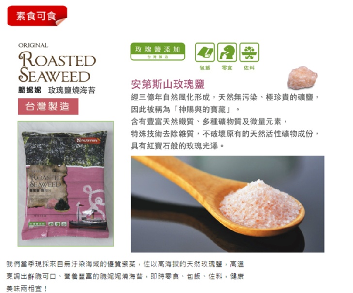 本店其他商品 查看全部 堅果海苔南瓜子脆片 原價$180 $99 堅果海苔脆片禮盒組 原價$350 $198 堅果海苔杏仁脆片 原價$180 $99 脆妮妮牛奶磨牙棒 原價$150 $75 脆妮妮金槍魚鬆 原價$150 $120 脆妮妮幼幼魚鬆 原價$150 $120 脆妮妮幼幼肉鬆 原價$150 $120 脆妮妮池上米餅 原價$199 $100 脆妮妮海苔米餅 原價$199 $100 脆妮妮起司米餅 原價$199 $100 脆妮妮黑糖薑薑好-玫瑰四物 原價$290 $139 脆妮妮海苔 原價$80 $40 脆妮妮牛軋餅 原價$150 $80 脆妮妮香蕉牛軋餅 原價$150 $80 脆妮妮鳳梨牛軋餅 原價$150 $80 苔灣人厚切海苔 原價$150 $75 脆妮妮原味牛軋餅特惠組 原價$900 $400