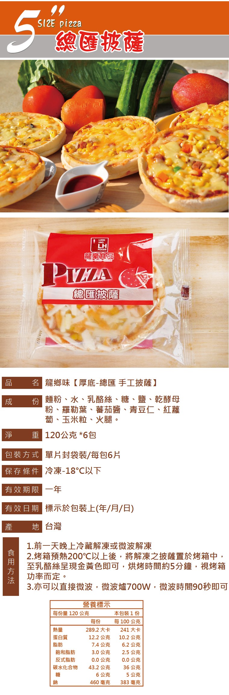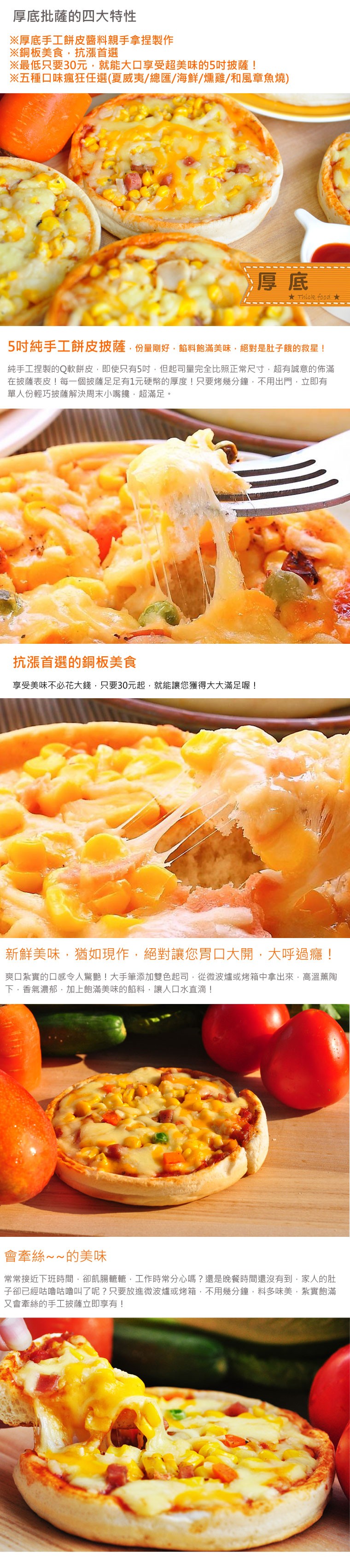 【龍豪食品-龍鄉味】銅板美食~厚片5吋 總匯 PIZZA(6入) 120公克*6包 優惠 $180 買氣13人 分享 : 加入購物車 數量 優惠$180 滿2000元免付運費180元 離島不限金額固定收取運費400元