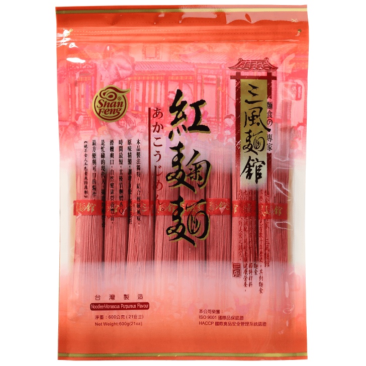 紅麴麵線香Q、滑嫩又爽口,調理方便,快熟易食,不含人工色素及防腐劑,自然健康又營養
