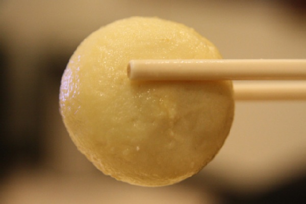 紫米糕當吸滿素食麻辣鍋湯汁時,在口中彈牙香Q有嚼勁的感覺無法言喻。