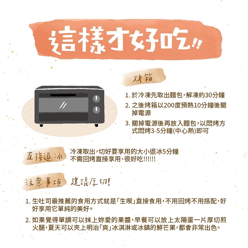 1.生吐司最推薦的食用方式就是「生喫」直接食用,不用回烤不用搭配,好好享用它單純的美好。