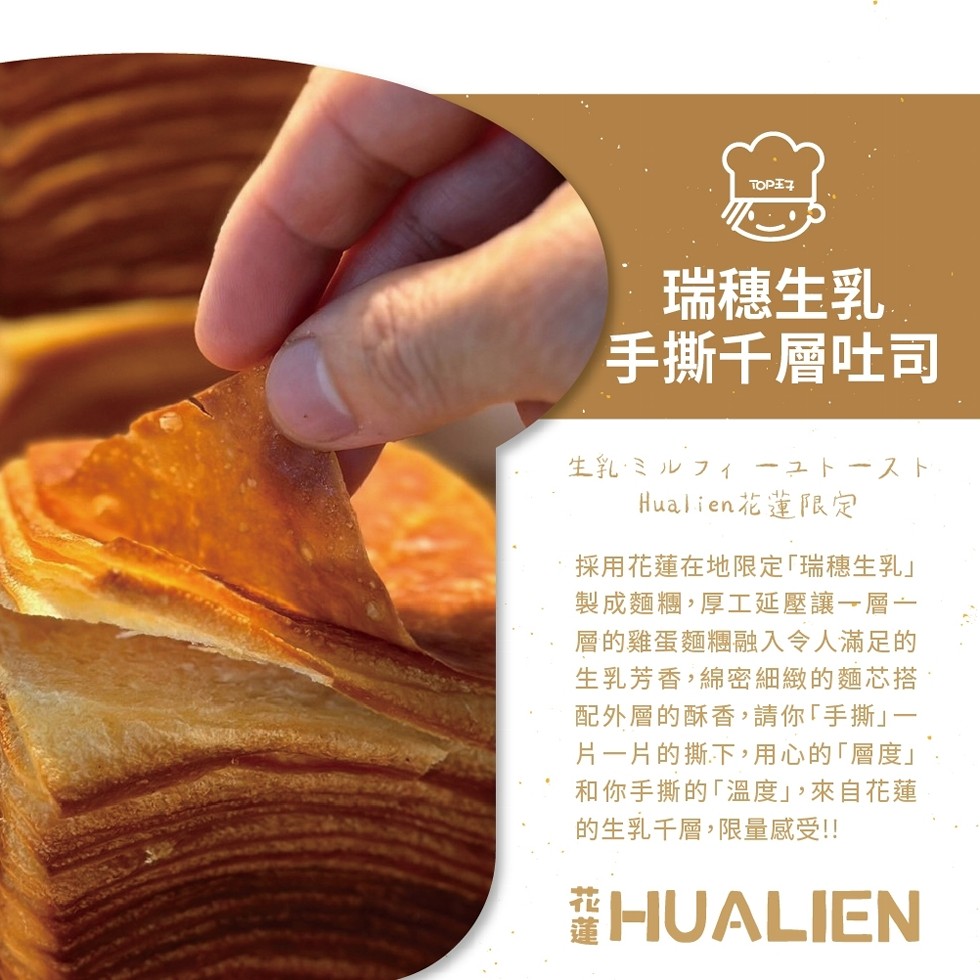 採用花蓮在地限定「瑞穗生乳」製成麵糰,厚工延壓讓一層一層的雞蛋麵糰融入令人滿足的生乳芳香,綿密細緻的麵芯搭配外層的酥香,請你「手撕」一片一片的撕下,用心的「層度」和你手撕的「溫度」,來自花蓮的生乳千層,限量感受!!