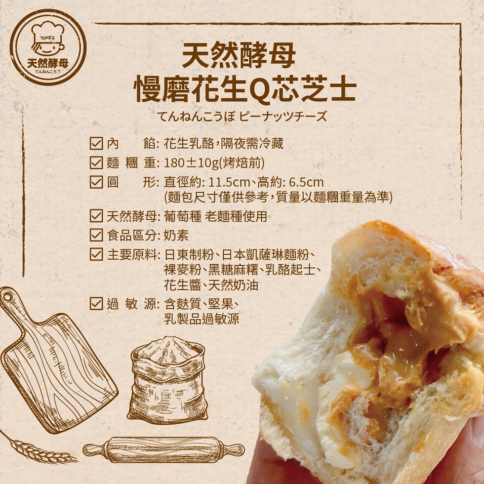 ✅主要原料:日東制粉、日本凱薩琳麵粉、裸麥粉、黑糖麻吉、乳酪起士、花生醬、天然奶油。