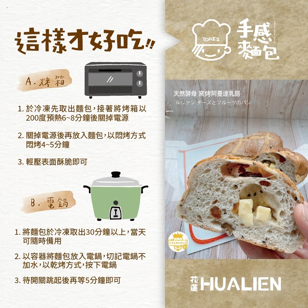 ✅主要原料:CDC法國麵包專用麵粉、 歐式配粉、鹽之花、黑芝麻、核桃、小麥粉、乳酪丁、蔓越莓。