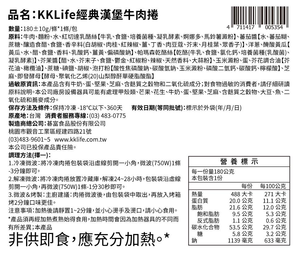 ◆產品名稱:【KKLife】經典漢堡牛肉捲