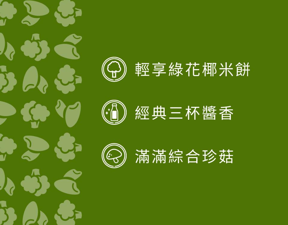 以三杯的方式料理多種鮮菇,麻油醇香與九層塔迷人清香;讓人口舌眷戀的好味道!