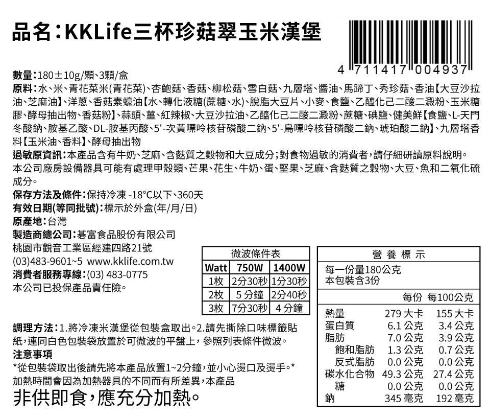 ◆產品名稱:【KKLife】三杯珍菇翠玉米漢堡