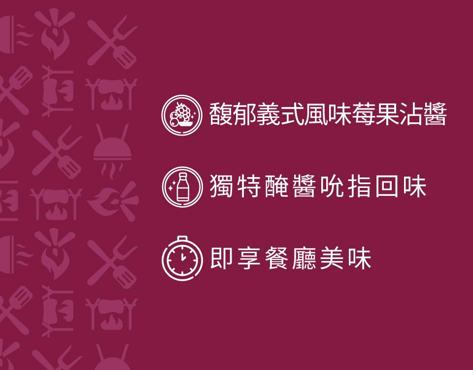 【KKLife】義式莓果醬烤羔羊肩排 310±40g(羊排230±30g、醬包80±10g(固形量8±4g)/盒) 原價$450 優惠 $320 分享 : 紅利回饋1% 滿額免運 加入購物車 數量 原價$450 優惠$320 滿2500元免付運費220元