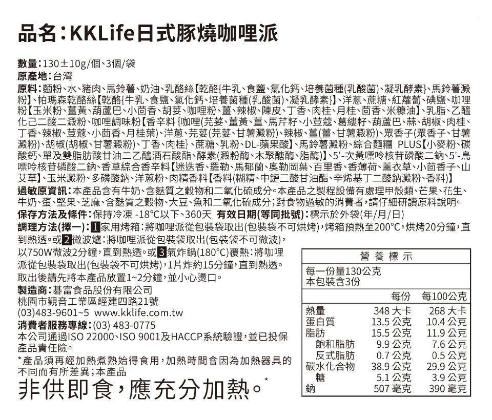 ◆產品名稱:【KKLife】日式豚燒咖哩派