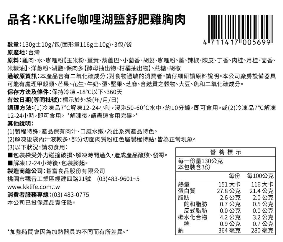 【KKLife】咖哩湖鹽舒肥雞胸肉 130g/包;3包/袋 原價$230 優惠 $165 售出2份 分享 : 紅利回饋1% 滿額免運 加入購物車 數量 原價$230 優惠$165 滿2500元免付運費220元