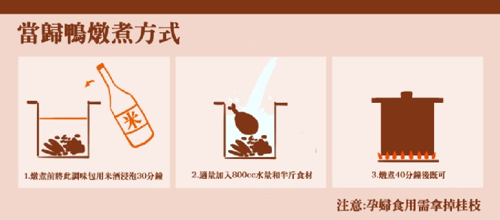 商品說明 產品名稱:信全東方藥膳湯包 (當歸鴨湯)規 格:當歸鴨湯-120克±10克製造日期:104.10.12保存期限:18個月內容物:當歸,川芎,熟地,枸杞,黑棗,黃耆,甘草,桂枝產品特色:道地台灣味, 私藏煲湯,遵循古法調配,搭配鴨肉熬煮,最佳的補湯品