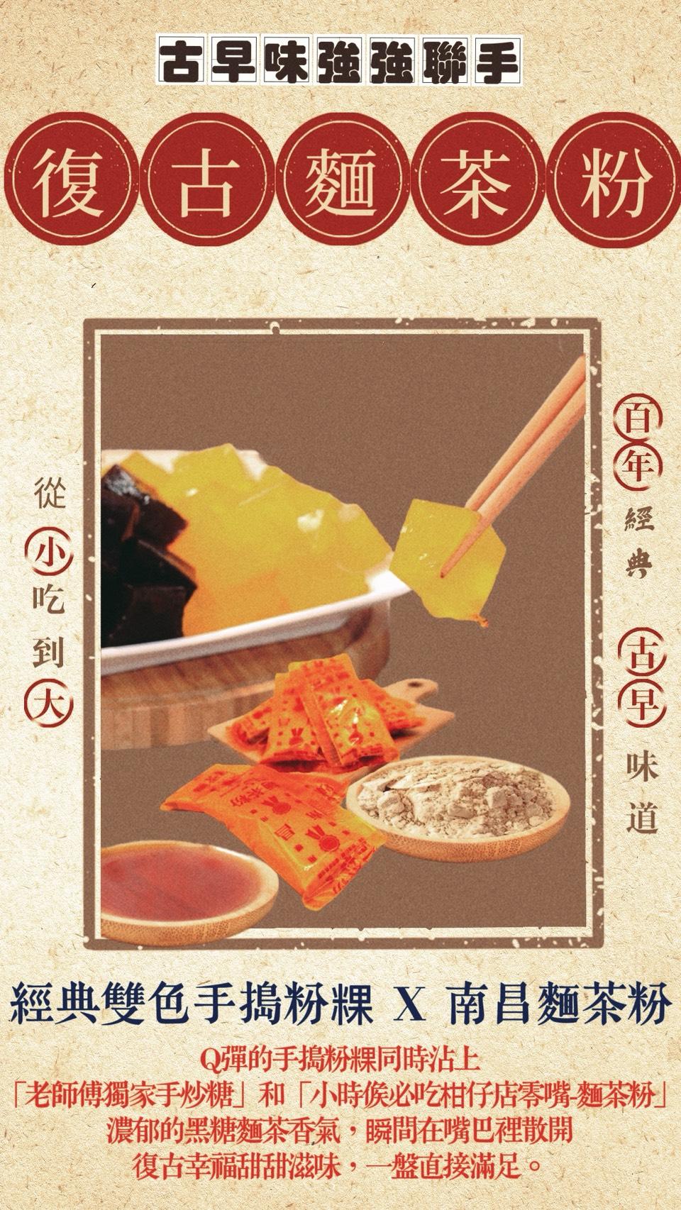 商品說明 商品名稱:麵茶雙色粉粿拼盤-原味+黑糖+麵茶粉規 格:420g±10%/盒(附手炒糖蜜+叉子)成 份:調和樹薯粉、冰糖、黃梔子、黑糖、手工冬瓜糖、麵茶粉產 地:台灣製造日期:接單製作保存期限:冷藏7天(含生產配送日)食用方式:拆封沾糖包直接食用或切塊加入各式冷熱飲品、剉冰、甜湯、燒仙草、熱奶茶..等等,不只能涼的吃,熱熱吃也很Q很好吃唷!商品特色:輕巧真空包獨享裝~每盒真空新鮮封存,冷熱吃都超Q絕佳彈性與黏性、吃起來就是跟別家的不一樣~品質超讚保證零添加,無防腐劑不含人工化學色素~每個粉粿都是天然食物原色各大電視媒體美食部落客熱情爭相報導知名網紅店家!!榮獲:2021嘉義市10大甜品店、2024國家品質保證金像獎、sgs檢驗產品合格 注意事項:冰後若有些微褪色為正常現象