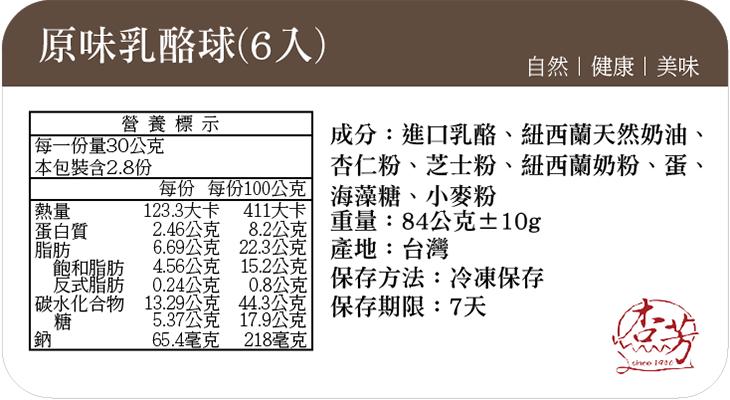 【杏芳食品】原味乳酪球6入