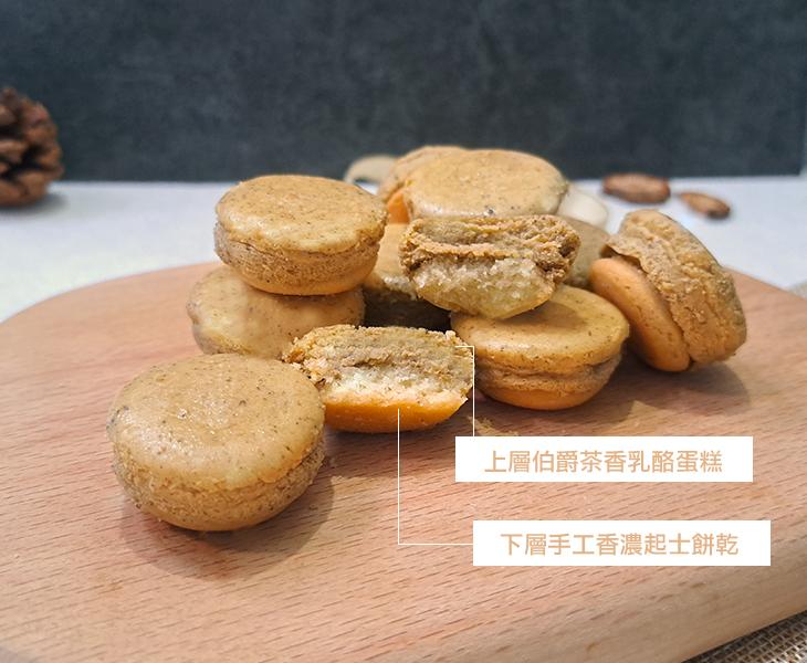 成 份:進口乳酪、紐西蘭天然奶油、海藻糖、乳酪粉、蛋、杏仁粉、小麥粉、伯爵茶粉