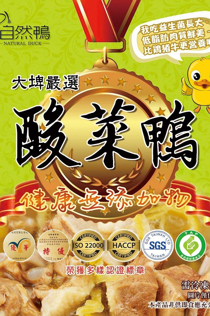 商品說明 品名:自然鴨大埤酸菜鴨成份:土番鴨肉、大埤酸菜、薑、米酒固形物:270公克重量:1200公克保存方法:冷凍-18℃以下保存期限:一年〈未開封〉產地:台灣廠商:川奇食品國際有限公司相關企業:台野畜產有限公司服務專線:05-5916828地址:雲林縣大埤鄉延平路三段72巷60號3、另加入高麗菜、火鍋料等一起食用,以豆瓣醬或豆腐乳沾食,風味更佳。注意事項:1、經加熱完成後請儘速食用完畢。2、經解凍後請勿覆凍,以確保鮮度及品質。3、本產品含有大豆及其製品。產地:台灣委託製造:東家食品股份有限公司〈越南東家羊肉爐〉電話:0800-231-326地址:新北市板橋區大觀路3段236號8樓製造商:森泉食品工業股份有限公司地址:嘉義縣義竹鄉東光村67號電話:05-3420451食品業者登錄字號:F-184822655-00000-3