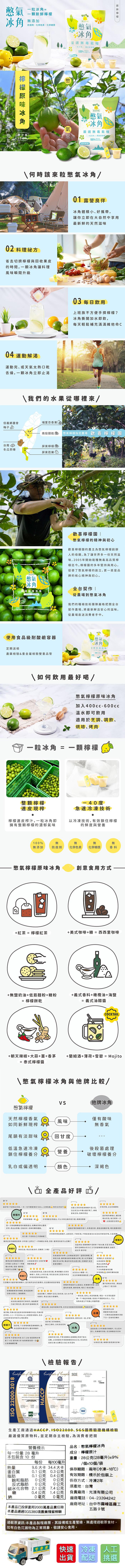 本店其他商品 查看全部 【憋氣檸檬】百香檸檬冰角 $189 售出6份 【老實農場】檸檬蔓越莓冰角 $179 售出12份 【老實農場】檸檬百香冰角 $179 售出12份 【老實農場】萊姆冰角 $169 售出320份 【老實農場】100%檸檬冰角 $169 售出320份 [滿額禮] 單筆訂單份數滿10份,滿額禮送【老實農場】100%檸檬冰角1份 原價$169 $0
