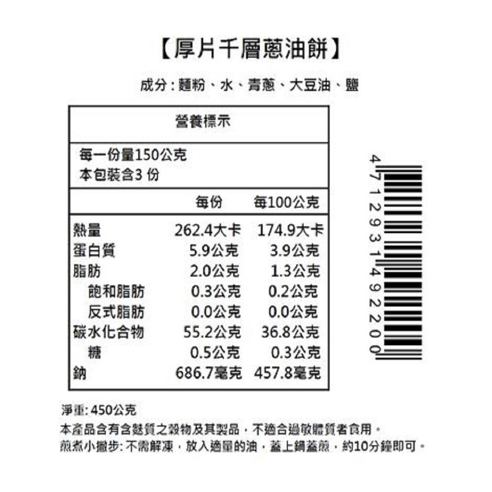 嚴選青蔥,不含添加物,超厚片多層次的蔥油餅。