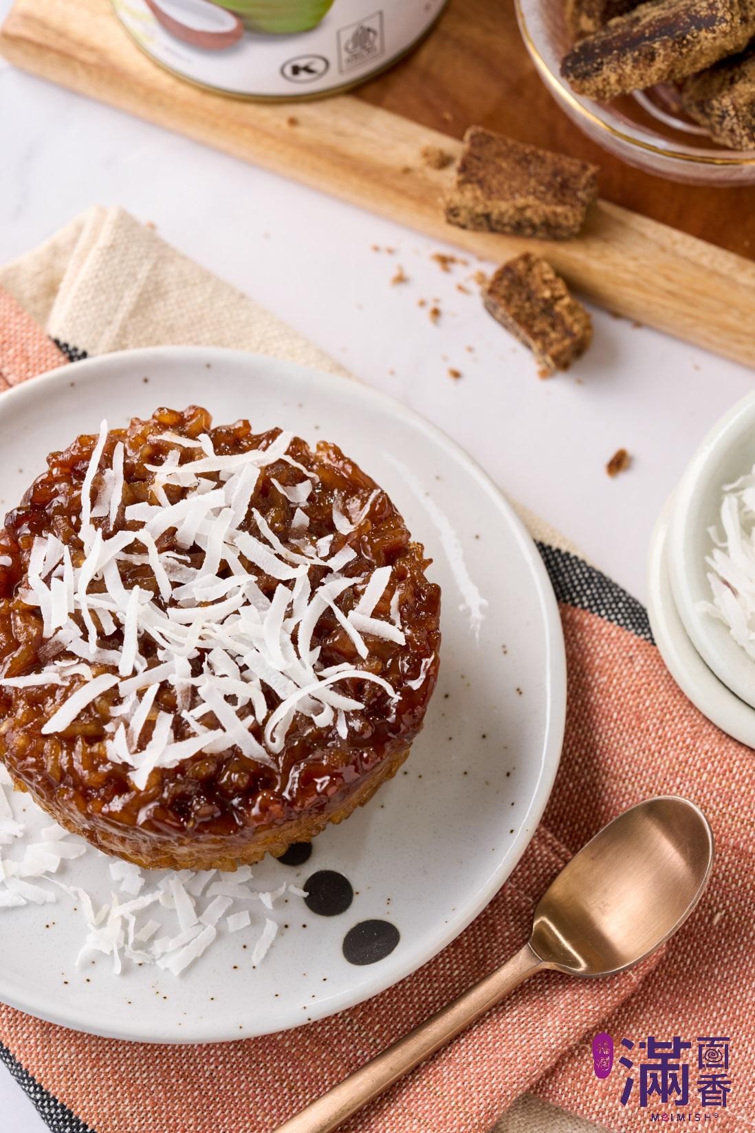 椰漿融合黑糖慢火煮成的濃稠椰糖醬,搭配軟Q彈牙的香糯米,