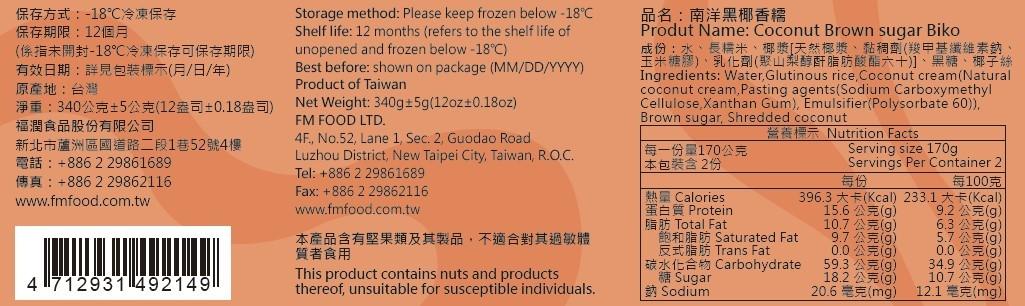 成 分:水、長糯米、椰漿[天然椰漿、黏稠劑(羧甲基纖維素鈉、玉米糖膠)、乳化劑(聚山梨醇酐脂肪酸酯六十)]、黑糖、椰子絲