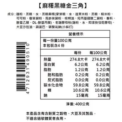 產品名稱:麻糬黑糖金三角(爆漿)(全素)